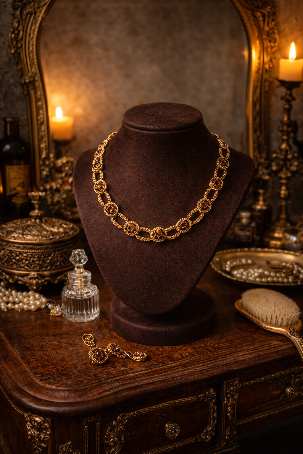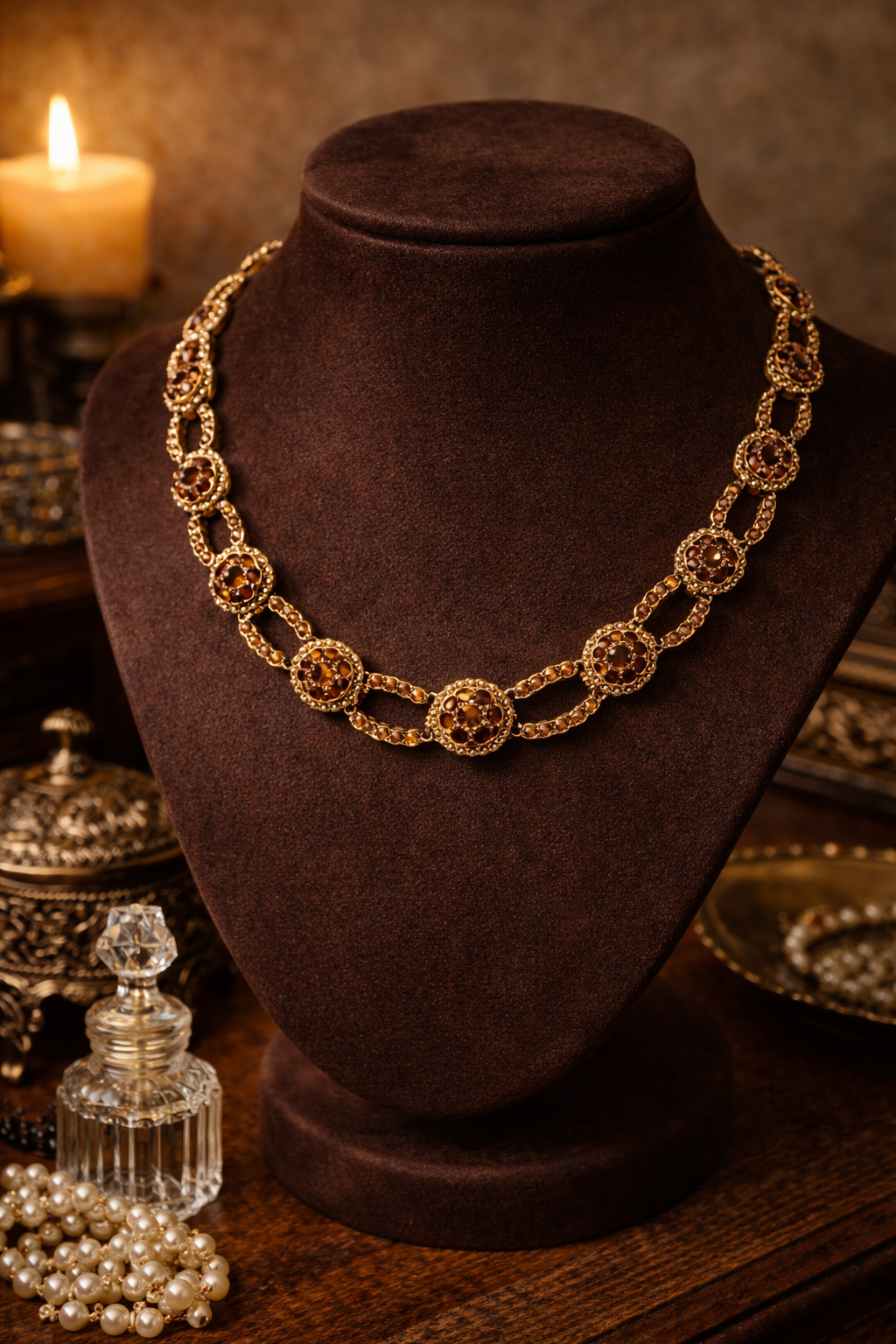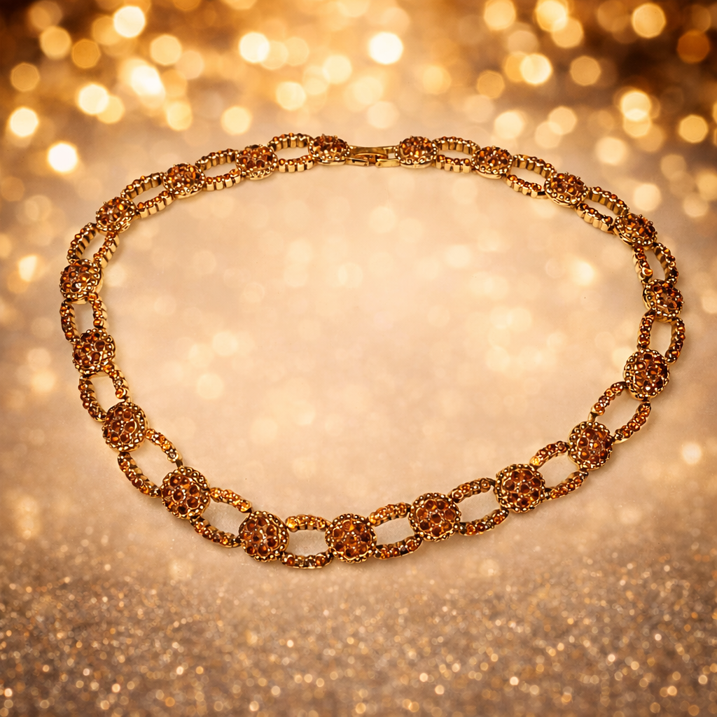 Elegant Gold-Tone Necklace with Amber Crystals – Vintage Style
