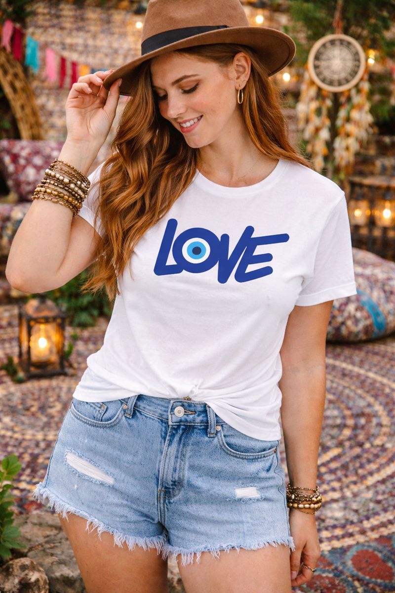 “LOVE” Turkish Eye T-Shirt – Stylish & Comfortable