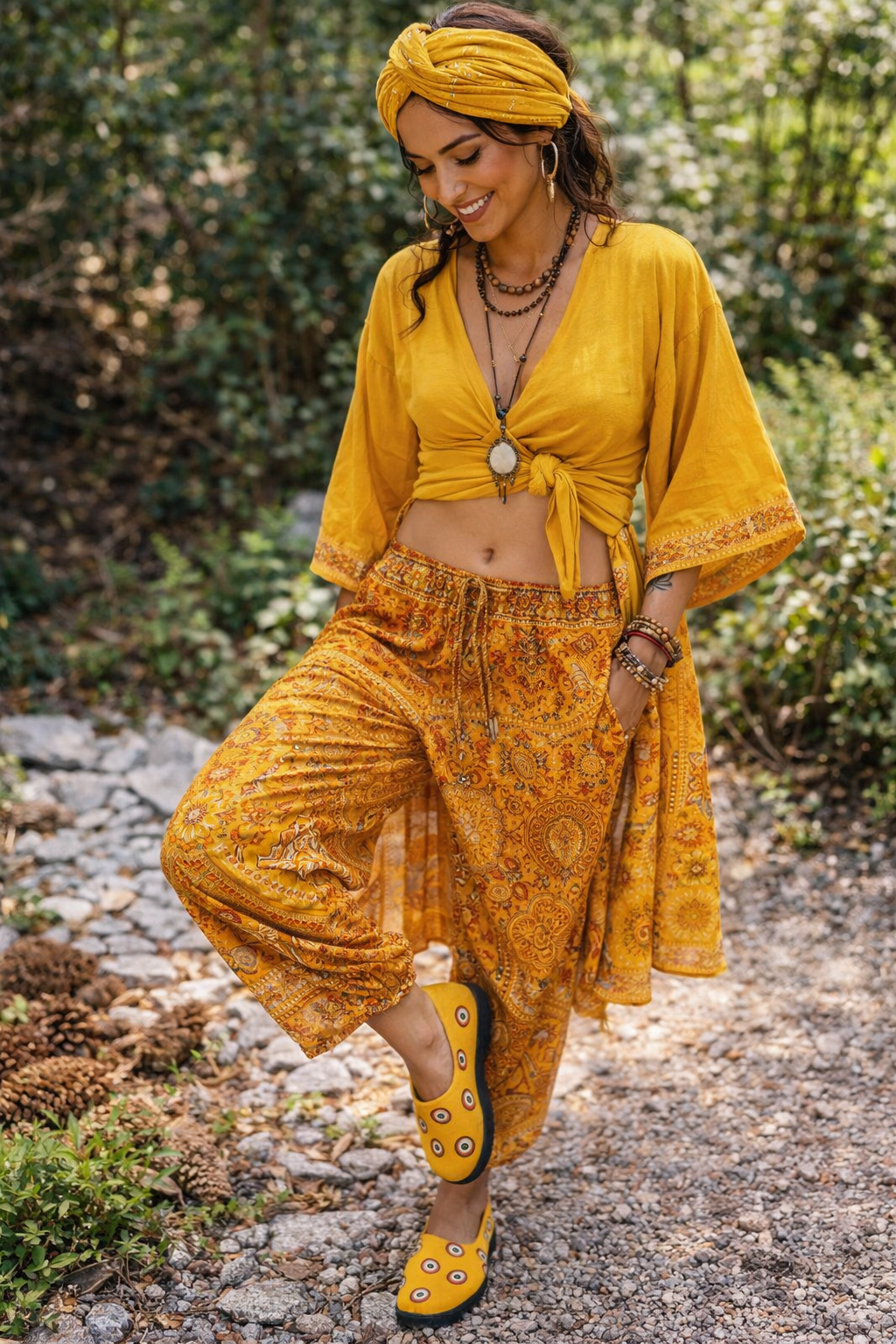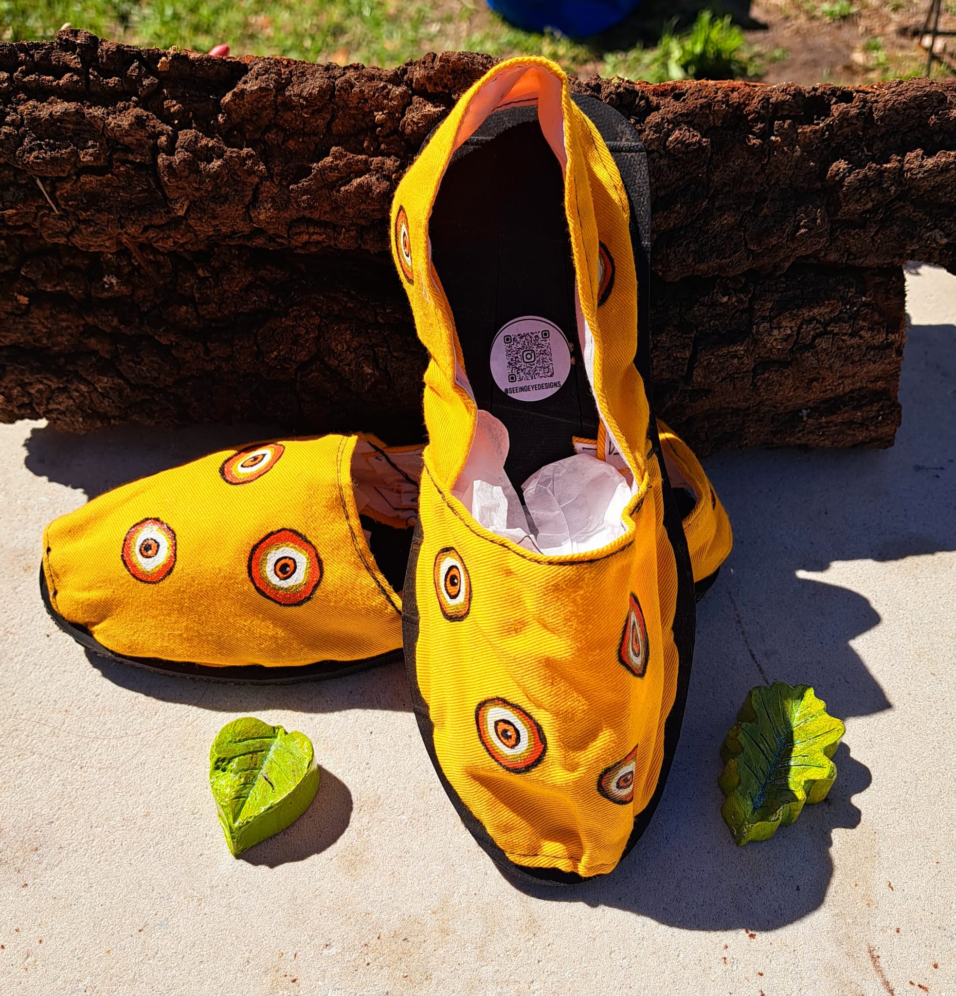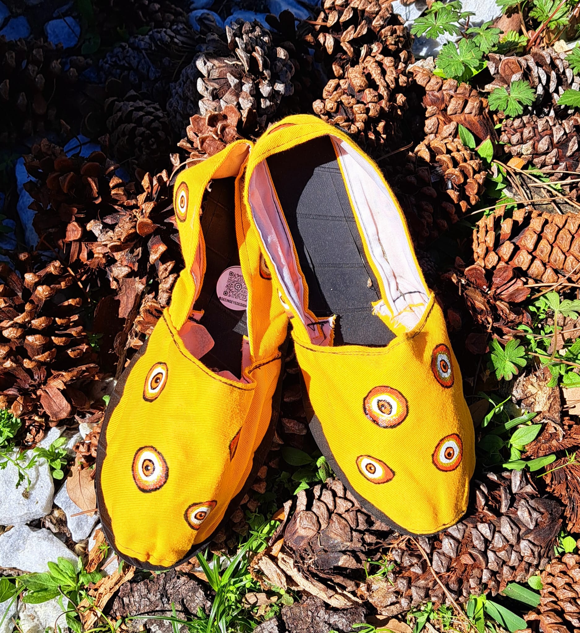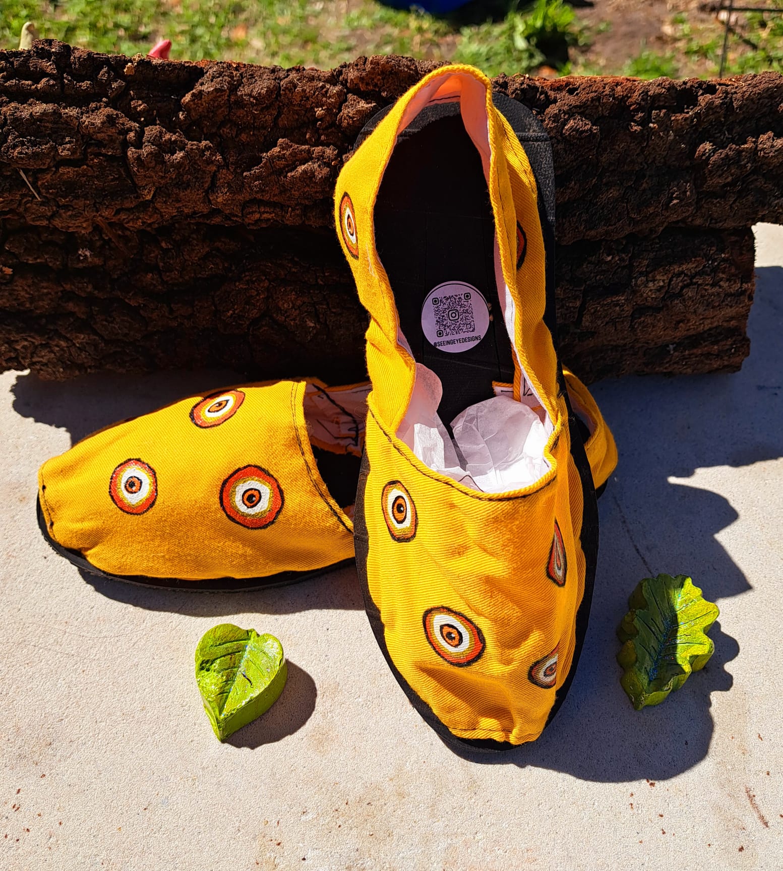 The cheerful yellow base adds a bold, sunny touch, while the hand-painted details give these shoes a distinctive boho-chic character. Lightweight and easy to slip on, they are perfect for everyday wear, vacations, festivals, or relaxed weekend looks.