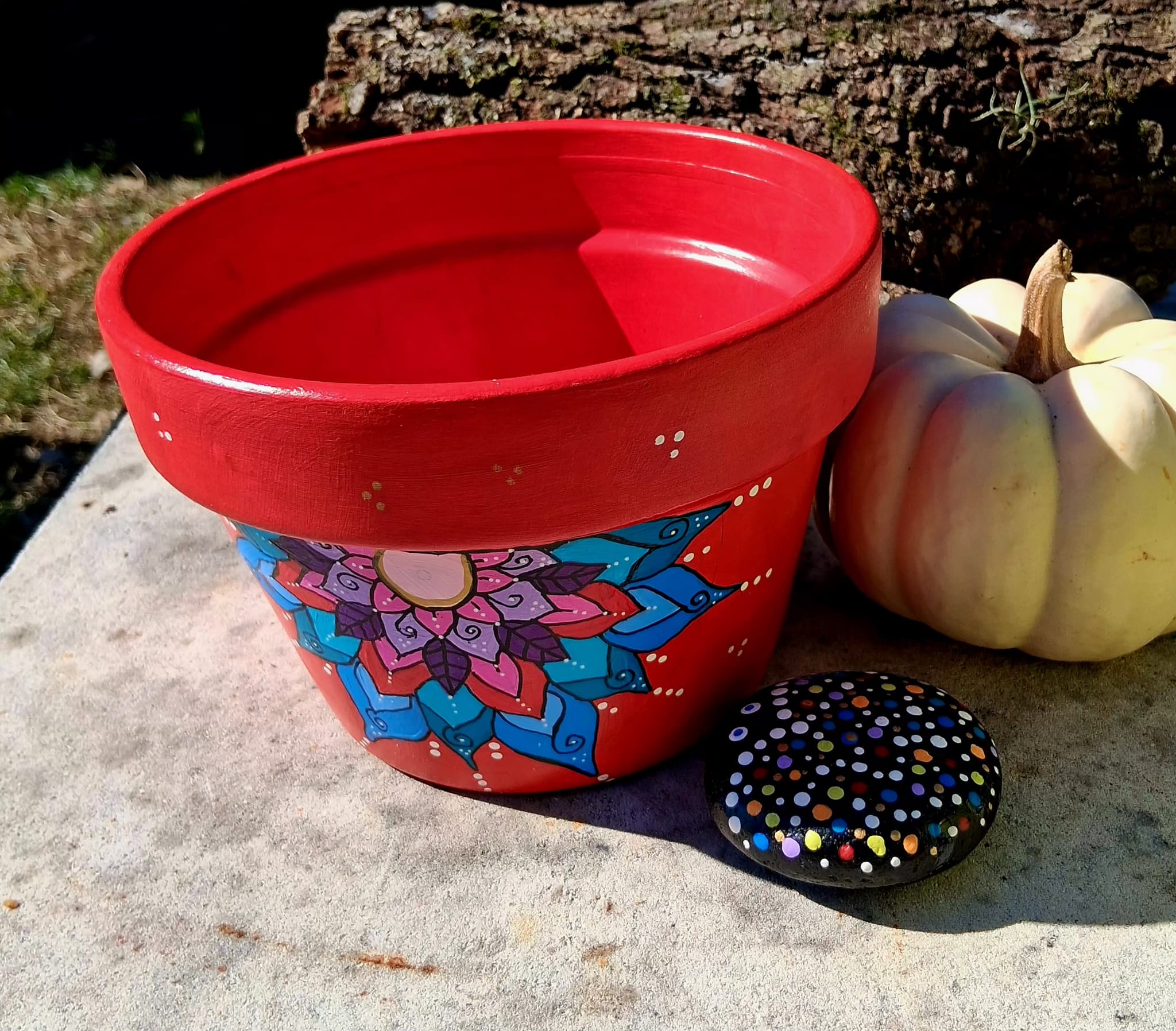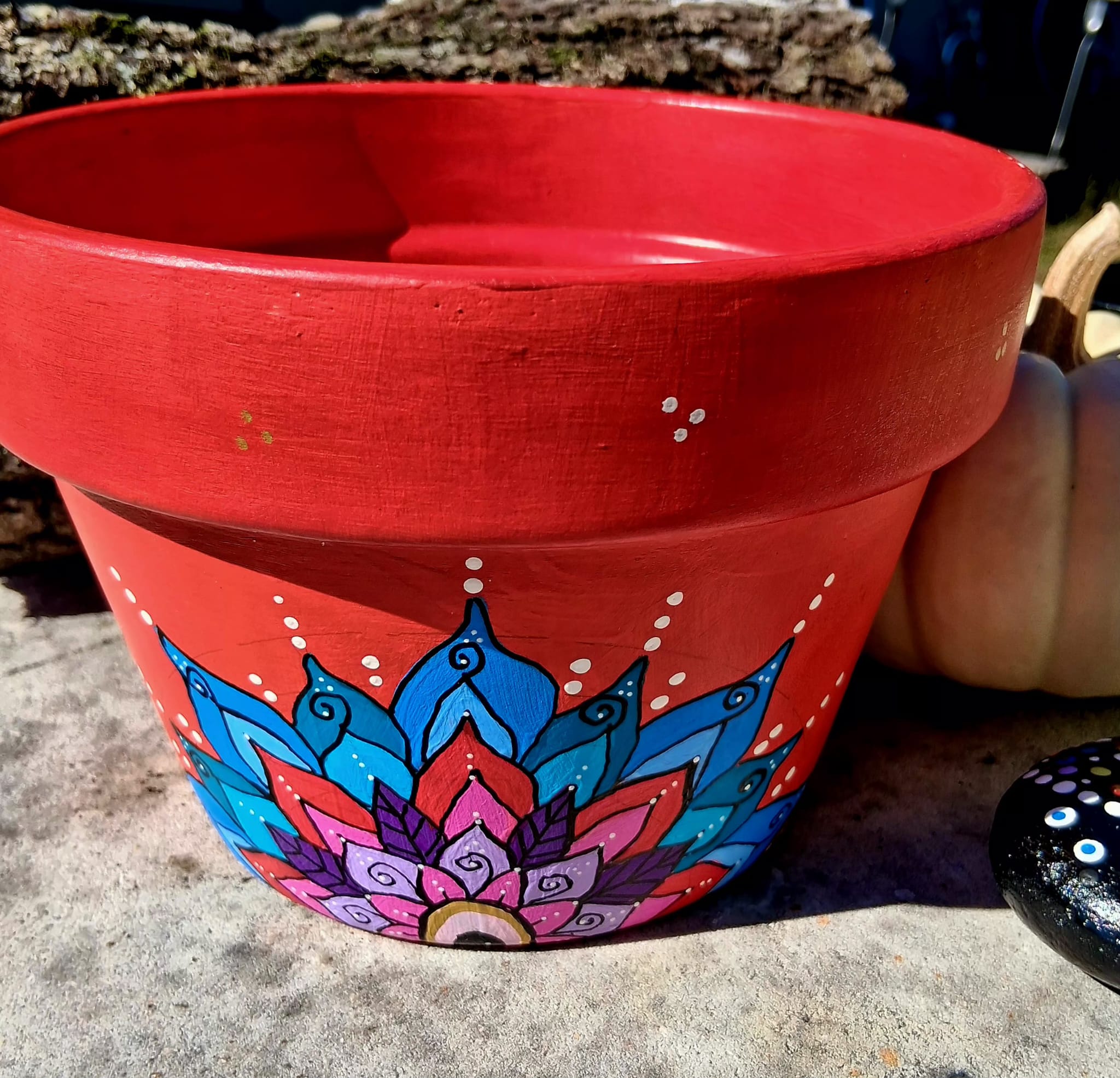 Hand-Painted Mandala Flower Pot β Vibrant, Artistic & One-of-a-Kind