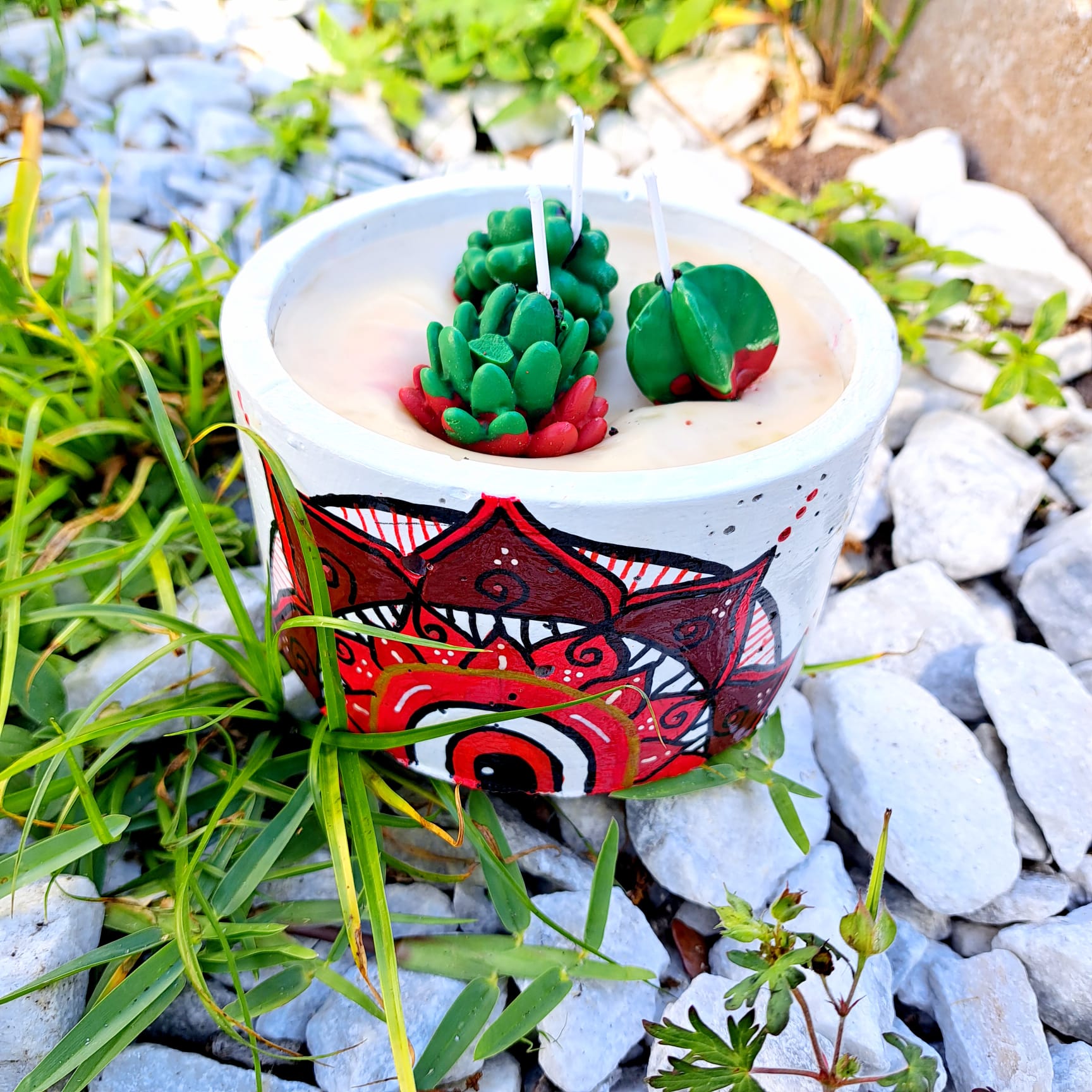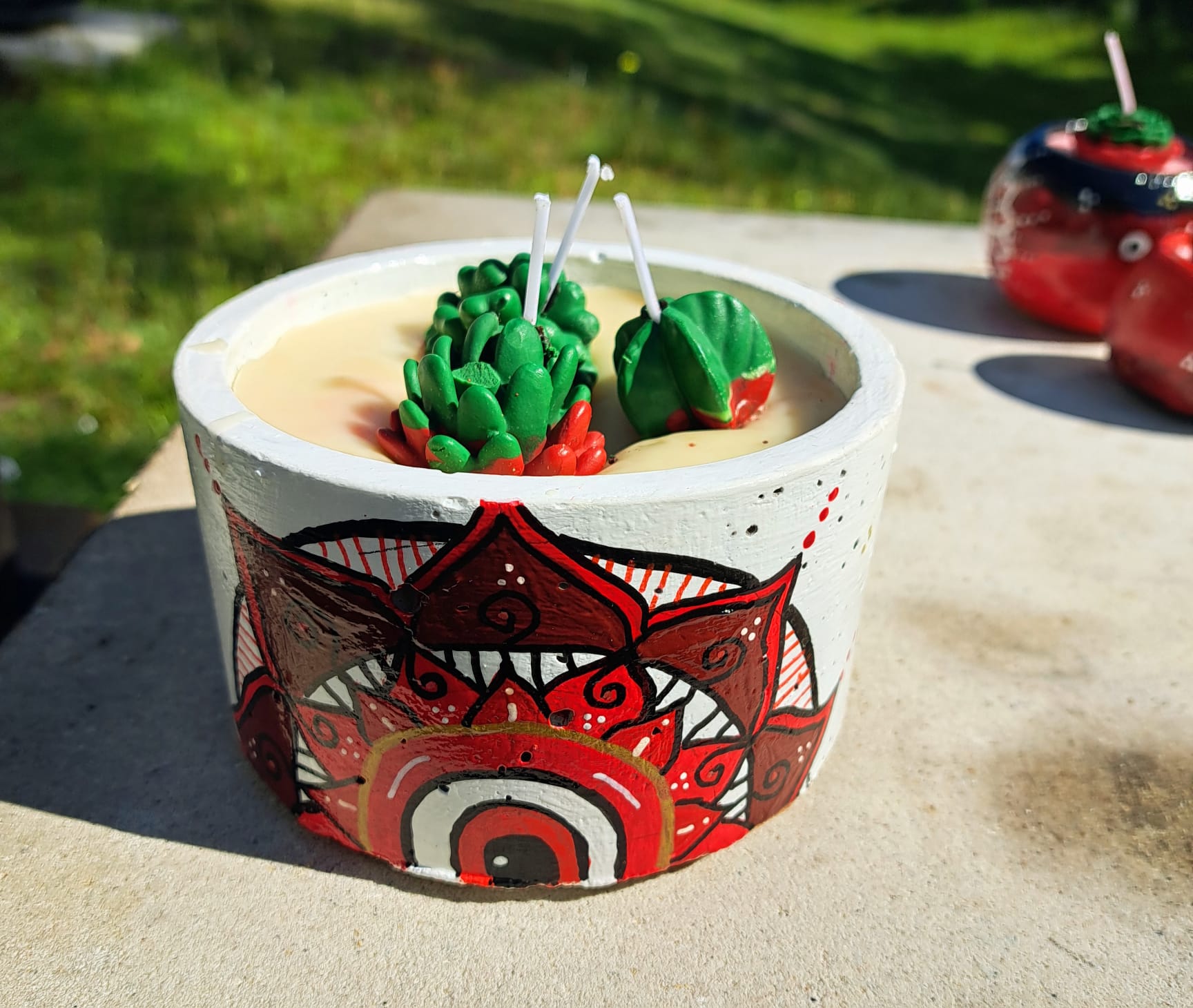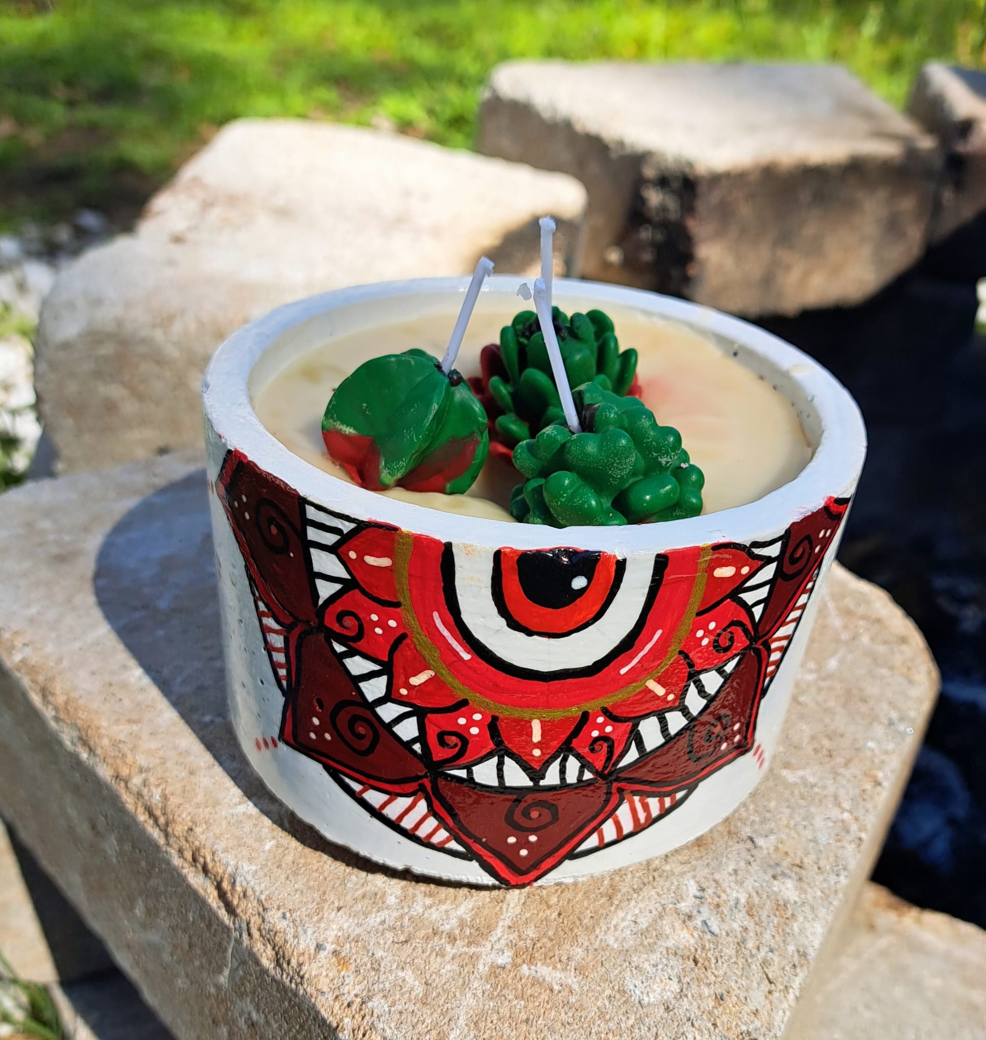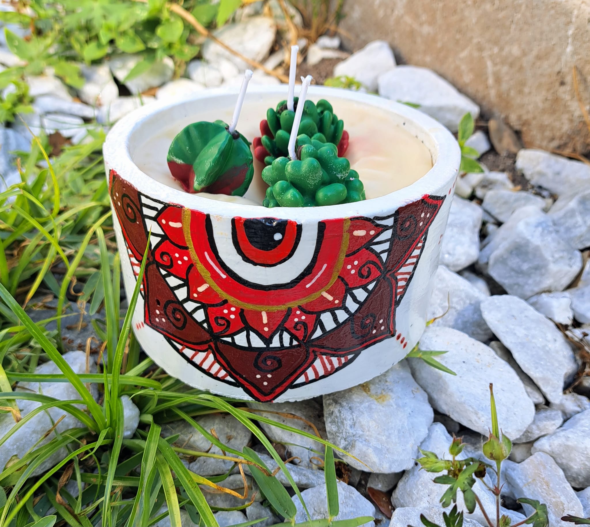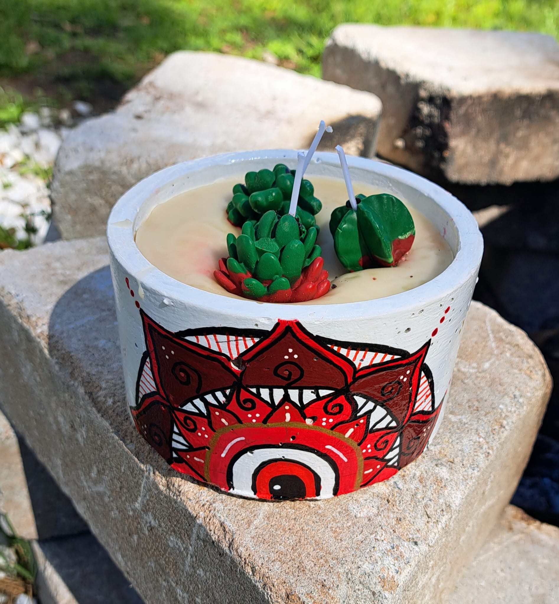 Mandala Small Cement Pot Candle β 5-Inch Handcrafted Candle