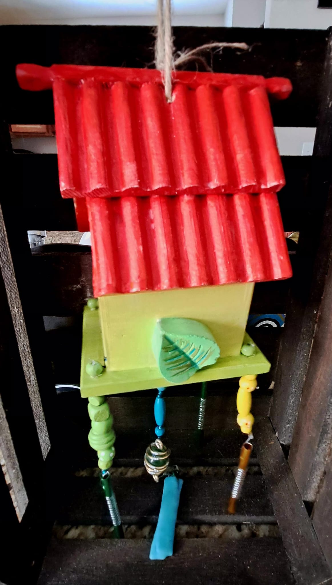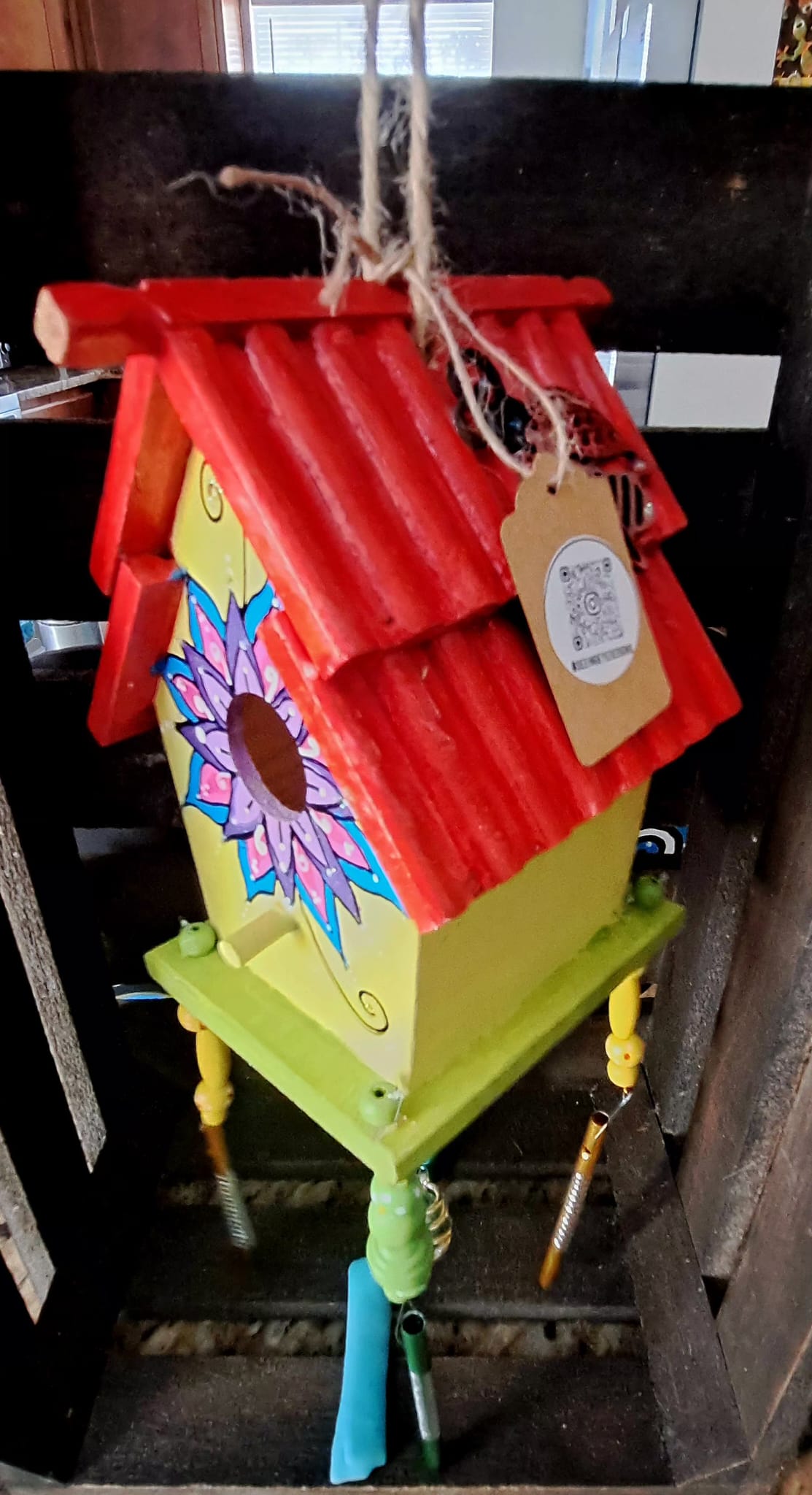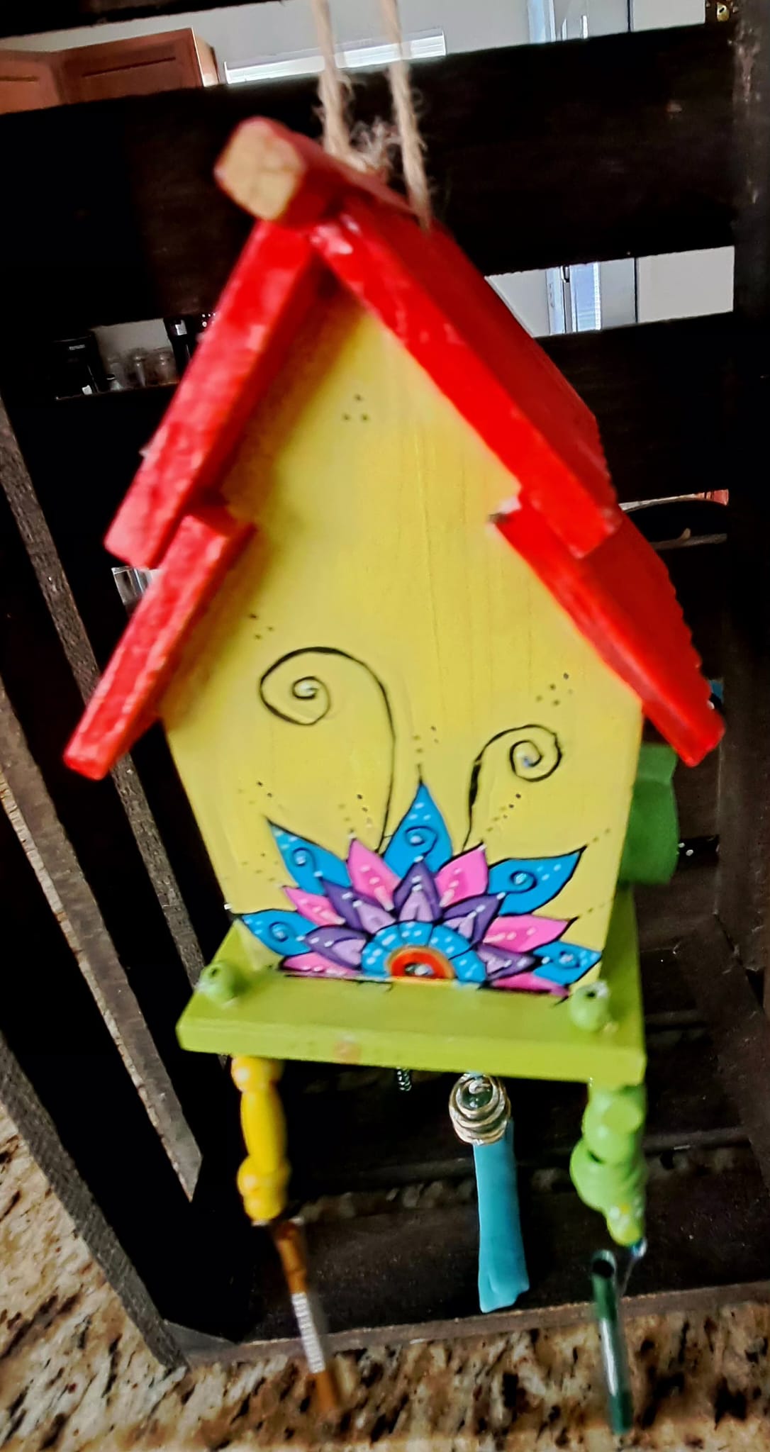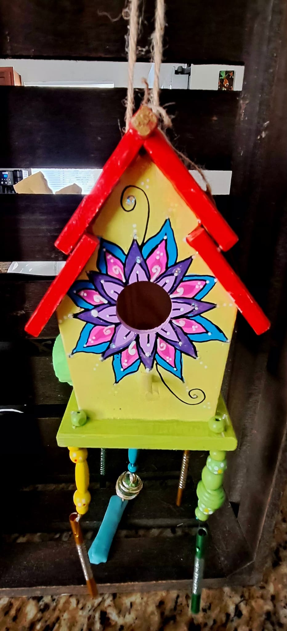 Crafted with a keen eye for detail, this wind chime fused glass bird house is a harmonious addition to any indoor or outdoor space.